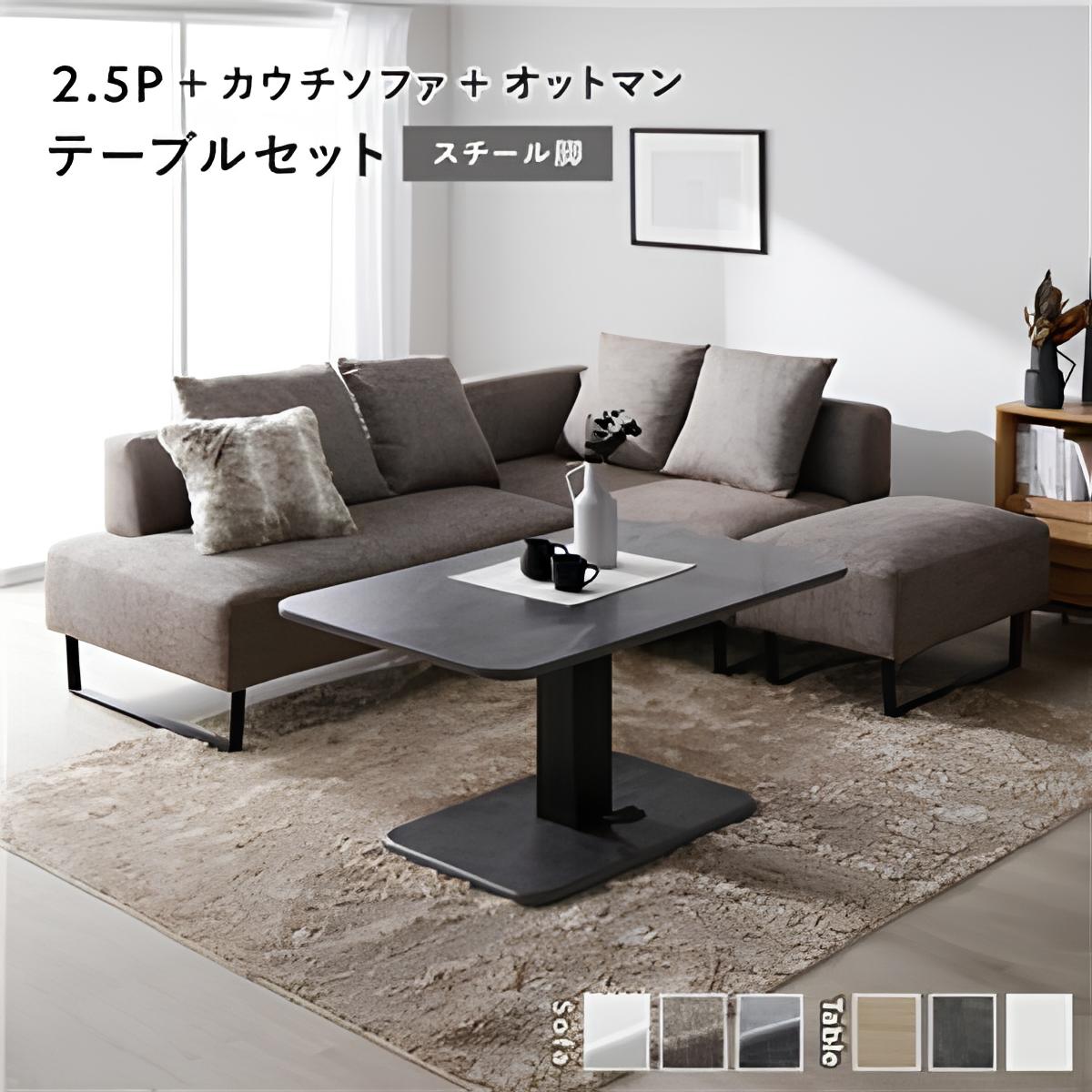 【大理石調テーブル付】ラグジュアリー・ラウンジソファセット "Grand" (Mix Gray)