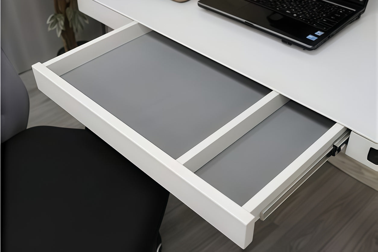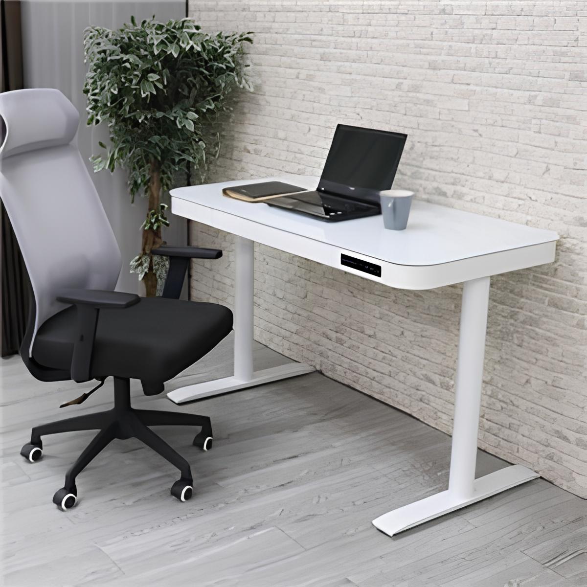 【電動昇降】クリスタルスマートデスク - 幅120cm ガラス天板 & 引き出し付 (White)